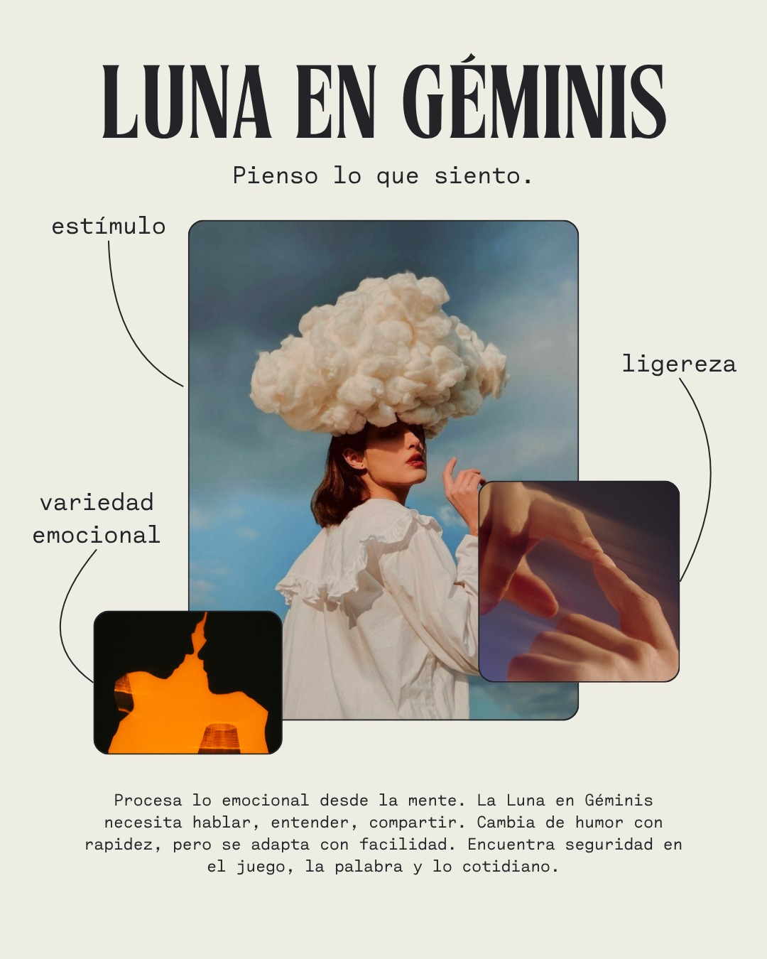 Géminis es aire curioso: conecta, juega, nombra. Si lo tenés en tu carta, hay una parte de vos que vive para aprender, comunicar, moverse.