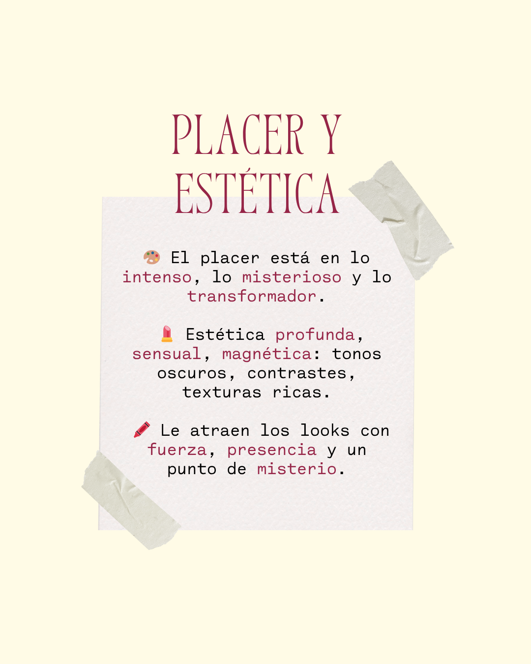Estilo oscuro, sensual, enigmático. Colores intensos, siluetas marcadas, detalles misteriosos. Todo guarda un secreto.